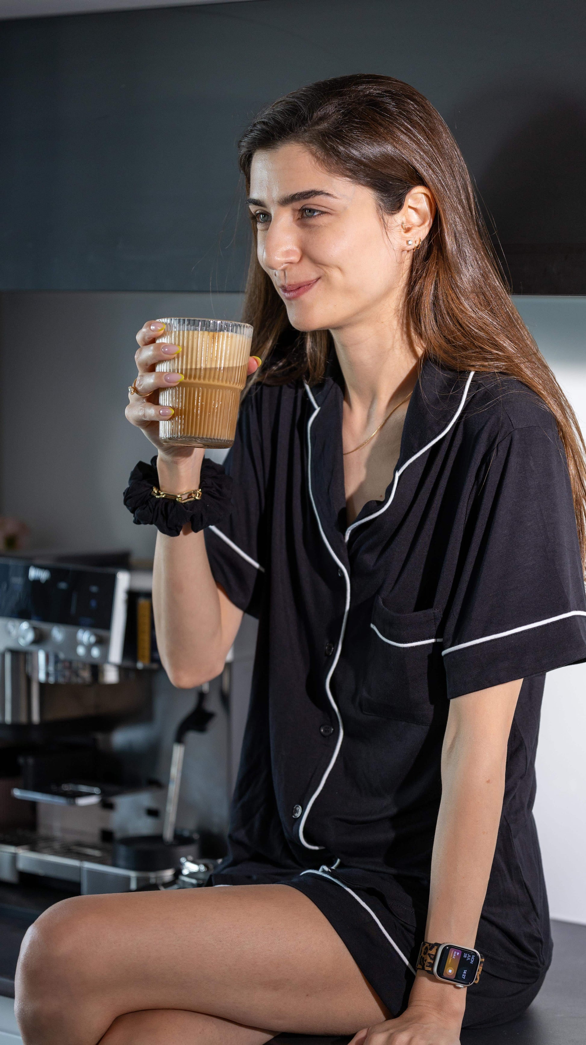 בד מודל סופר רך ומקרר, כזה פשוט מתחשק ללבוש כל היום (תכלס לפעמים אני עושה את זה). הגזרה משוחררת אבל מדויקת, הפספול הלבן מוסיף בדיוק את הטאץ׳ שצריך, ויש אפילו כיסים – כי ברור שצריך מקום לטלפון גם בפיג׳מה.